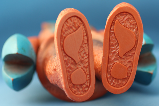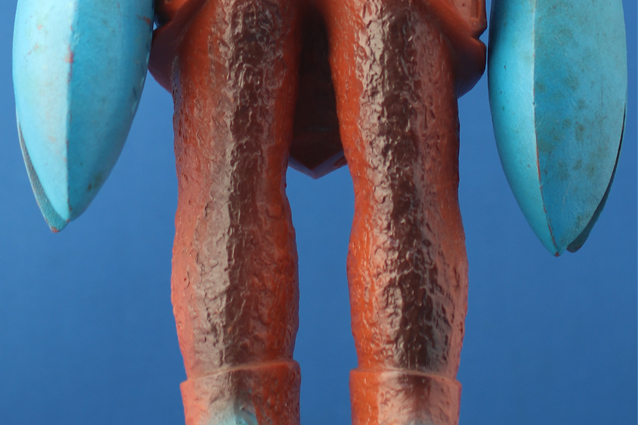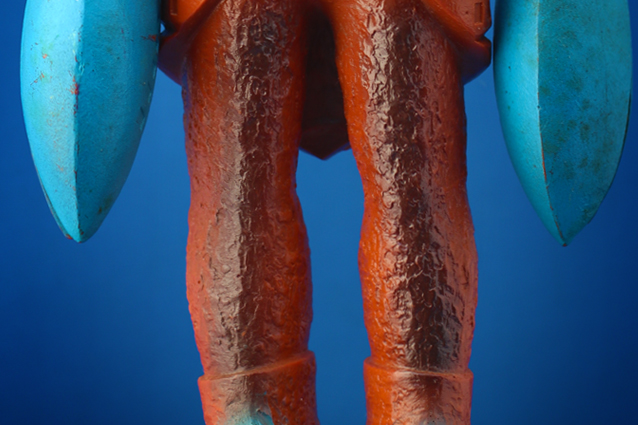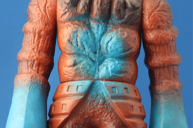 茶色系の成形色の人形に、水色塗装な